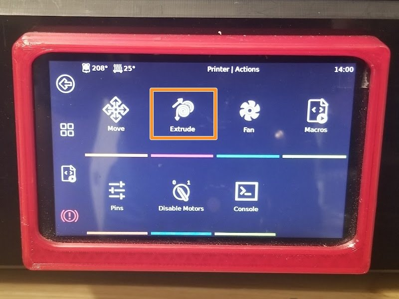 - If printing, a pause macro will run first, then the unload macro at the printing temperature. After you insert new filament, it will autorun the load macro. After which, clear the purged amount and press resume on the screen.