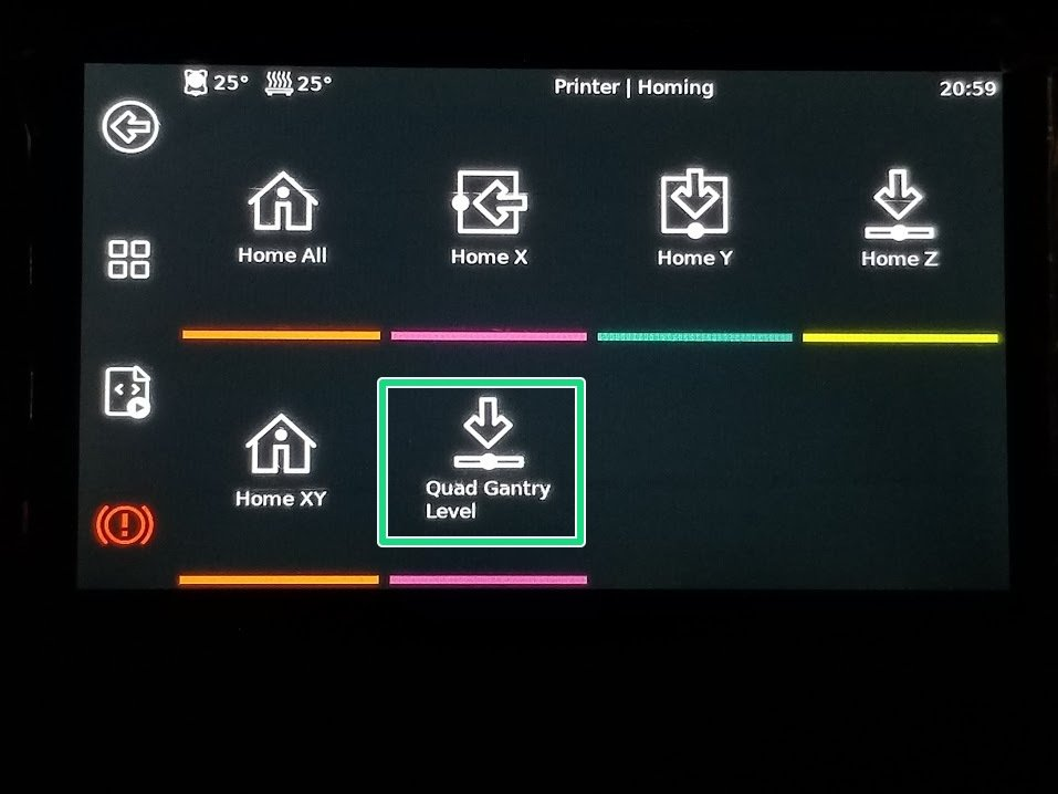 | -->Homing | -->Homing/Home All -- wait for finish | -->Quad Gantry Level (QGL) -- wait for finish |