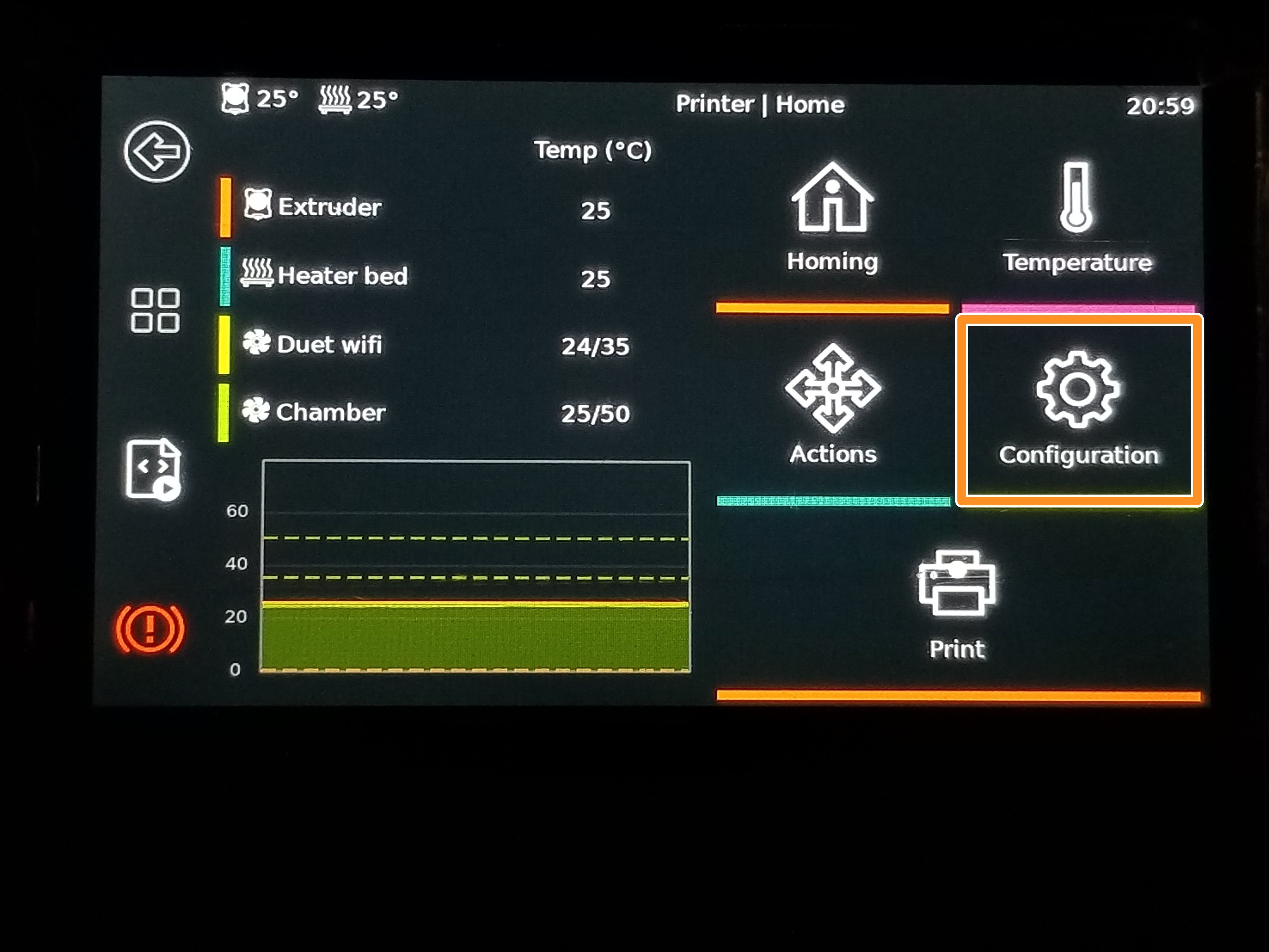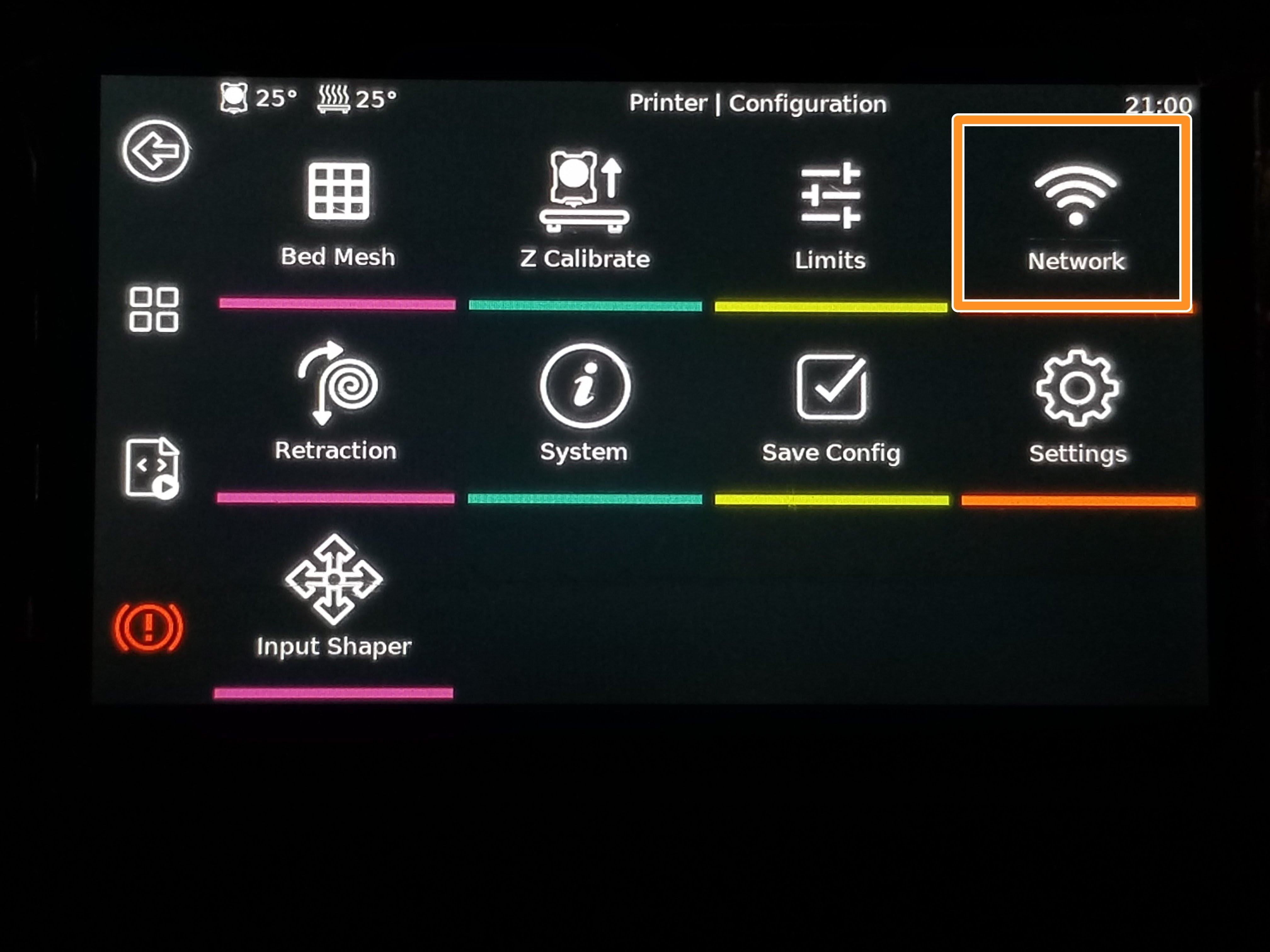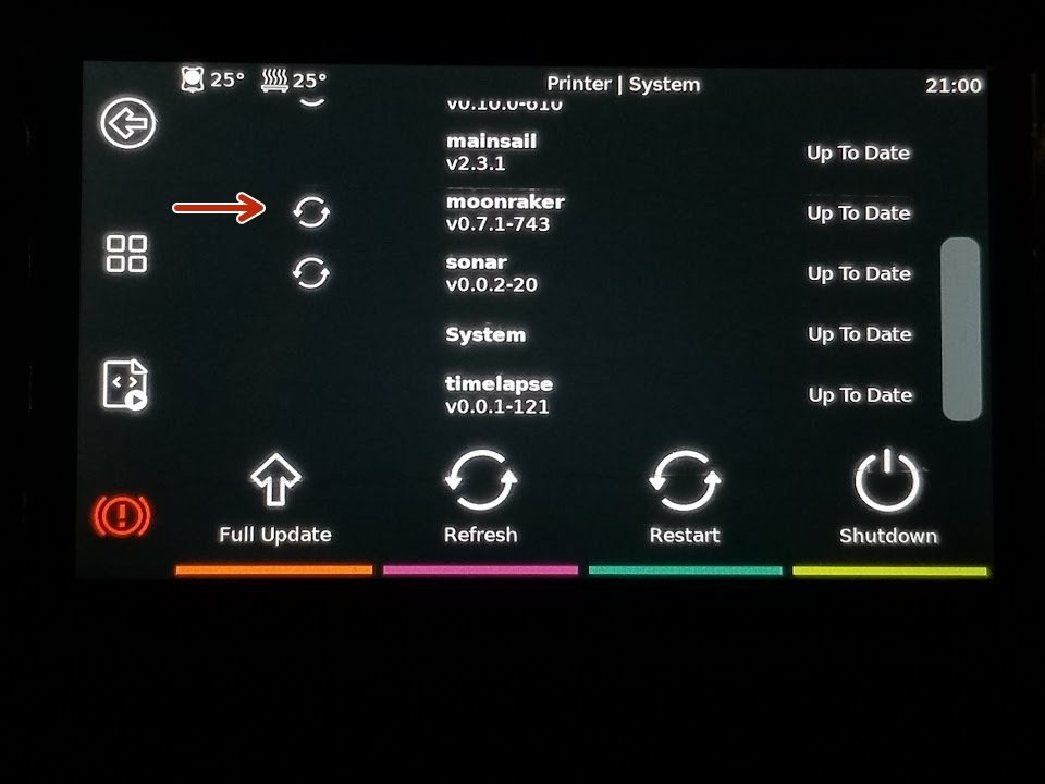 | -->Configuration | -->Configuration/network | Choose your network and enter in your password. | Restart Moonraker |