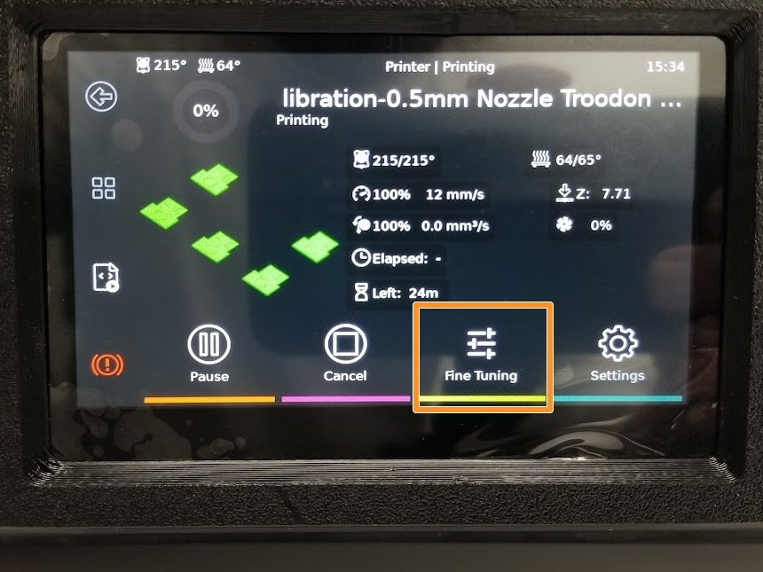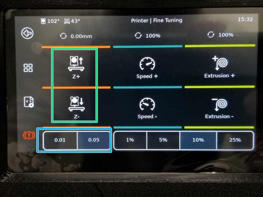 | Go into Fine Tuning | Z Offset | Clicking on these items also brings up additional menus | Example when pressing the extruder readout on the printing screen. |